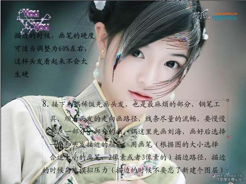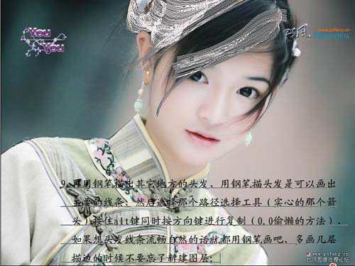 9、再用钢笔描出其它地方的头发,用钢笔描出路径,然后按住Ctrl Alt复制,多画几层描边的时候不要忘记新建图层。