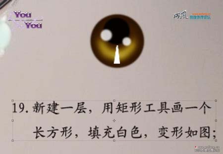 19、新建一层,用矩形工具画一个长方形,填充白色,变形如图。
