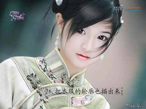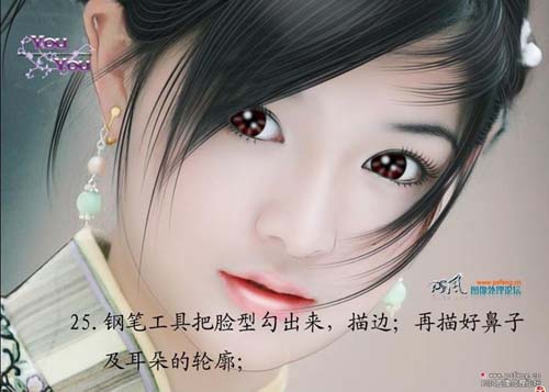 #p# 25、用钢笔工具把脸型勾出来,描边,再描好鼻子及耳朵的轮廓。
