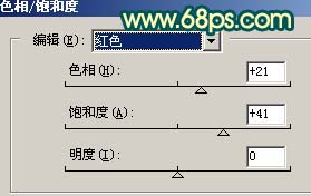 2、创建色相/饱和度调整图层,对红色及青色进行调整,参数设置如图2,3,效果如图4。