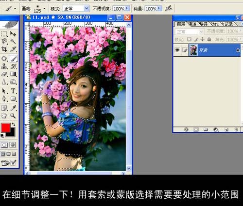 7、合并所有图层,用套索工具处理人物的皮肤部分。