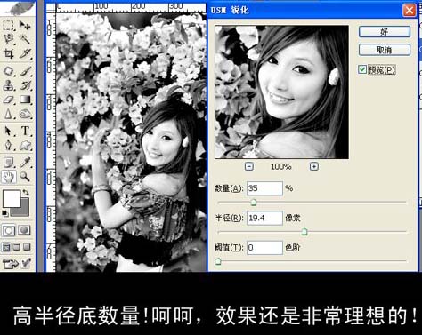 #p# 8、选择菜单:图像 > 模式 > Lab颜色,点通道面板,选择明度通道执行:滤镜 > 锐化 > USB锐化,参数设置如下图,确定后选择菜单:图像 > 模式 > RGB颜色,完成最终效果。