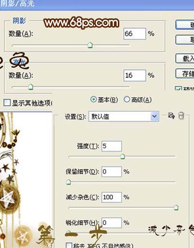 1、打开原图素材,双击图层解锁,然后执行:图像 > 调整 > 阴影/高光,参数设置如下图上,确定后再执行:滤镜 > 杂色 > 减少杂色,参数设置如下图下部。