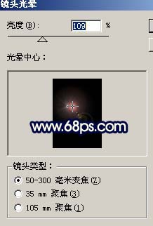 5、新建一个图层,填充黑色,然后执行:滤镜 > 渲染 > 镜头光晕,参数设置如图9,确定后把图层混合模式改为“滤色”,然后适当改变大小放到,人物的吉他上效果如图10。
