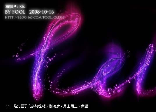 最终效果 1、新建一个800 * 600像素的文件,背景填充黑色,然后用钢笔工具勾出想要的文字路径。