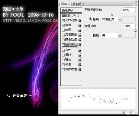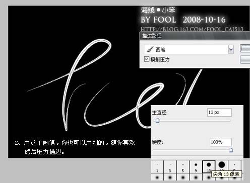 #p# 2、新建一个图层,设置画笔,参数如下图,然后选择描边路径。