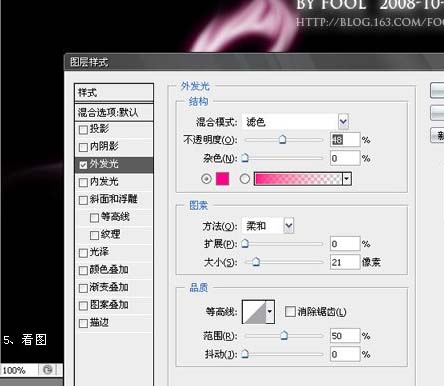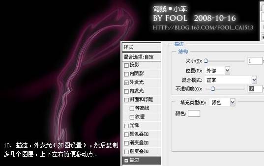 10、描边,外发光,然后复制多几个图层,上下左右随便移动。