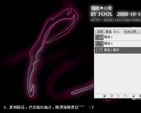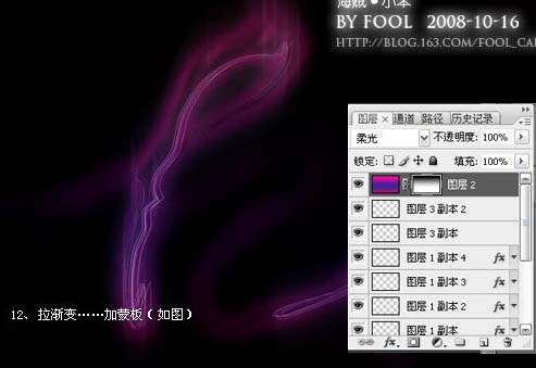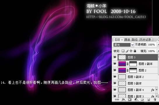14、看上去不是很好看,随便再画几条路径,然后柔光。