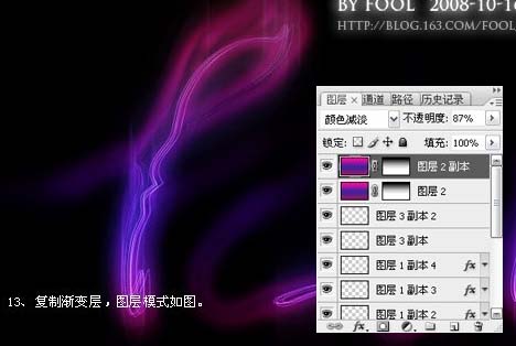 13、复制渐变图层,图层混合模式改为“颜色减淡”。