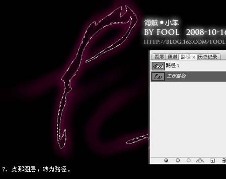 7、调出文字选区,点路径面板,转为路径。