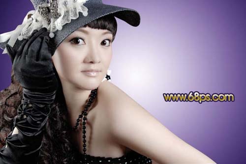 1、打开原图素材,新建一个图层,选择渐变工具颜色设置如图1,然后拉出图2所示的径向渐变效果。