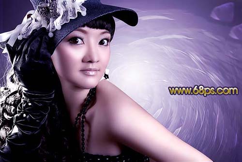Photoshop MM照片添加紫色旋涡背景教程