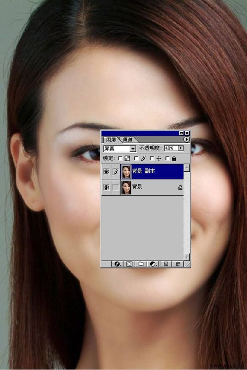 10.再新建一个图层,选择为屏幕(这是图象会变亮,调整不透明度为40%),在屏幕层上USM锐化,突出毛发