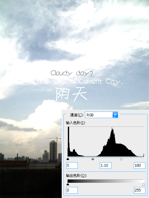 图像 >> 调整 >> 色阶,输入色阶设为0,1.10,180。
