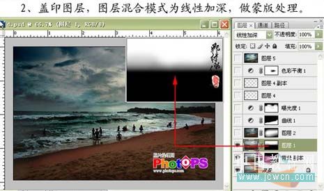 2、新建一个图层,按Ctrl + Alt + Shift + E盖印图层,图层混合模式改为“线性加深”,做蒙版处理。