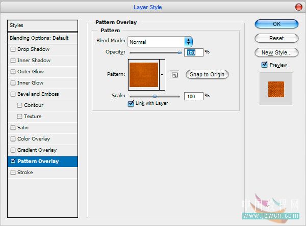 选中文字图层,选择刚才定义的图案,给文字图层添加图案叠加效果: