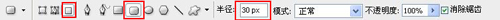 3、新建“图层1”,选择工具箱中的圆角矩形工具,并在工具箱中设置绘制类型为“填充像素”、绘制矩形圆角半径为30像素、绘制图像的宽度为8厘米、高度为5厘米。参数如图2所示。
