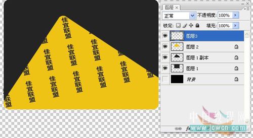 并拖动文字图像到新建图像窗口,命名为图层3,对它进行变换。如图6所示。