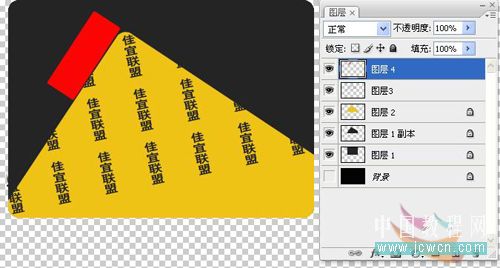 1、点击“创建新图层”,名称为“图层4”。再次使用圆角矩形工具绘制一个任意大小的“红色”的圆角矩形图像,然后变换调整到如图7所示。
