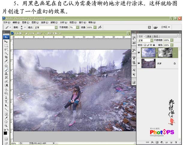 5、用黑色画笔在自己认为需要清晰的地方进行涂沫,这样就给图片创造了一个虚幻的效果。