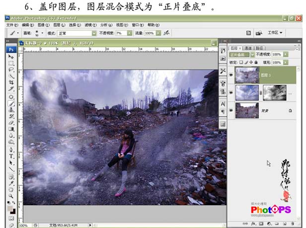 6、新建一层,按住Ctrl+shift+alt+e盖印图层,图层混合模式为“正片叠底”。