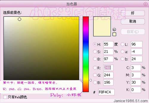 4、新建一个图层,填充淡黄色:#F8F4C4,确定后把图层混合模式改为“正片叠底”。