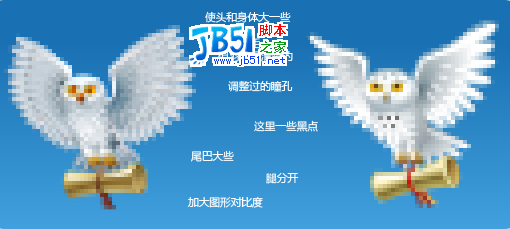 但目前16 × 16版让人觉得是猫头鹰粪而非一个猫头鹰本身,因此把它重新涂画一遍。