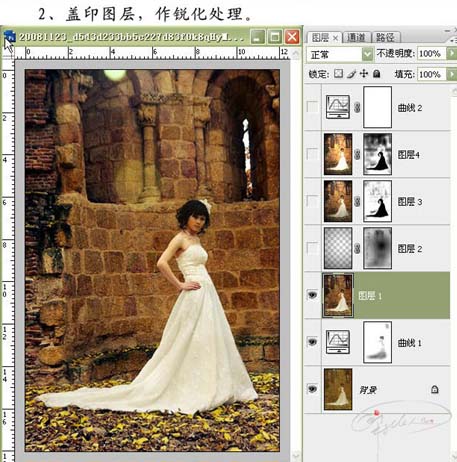 2、新建一个图层,按Ctrl + Alt + Shift + E盖印图层,作锐化处理。