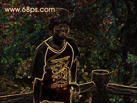 2、新建一个图层,按Ctrl + Alt + Shift + E盖印图层,然后执行:滤镜 > 风格化 > 照亮边缘,确定后效果如图2,然后把图层混合模式改为“颜色减淡”,加上图层蒙版用黑色画笔把人物部分擦出来,效果如图3。