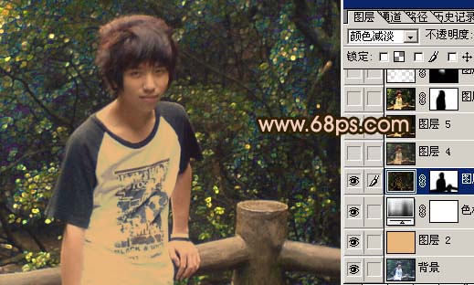 1、打开原图素材,新建一个图层填充颜色:#E9B67D,然后把图层混合模式改为“正片叠底”,效果如图1。