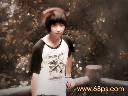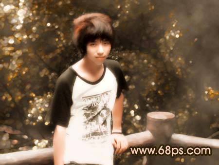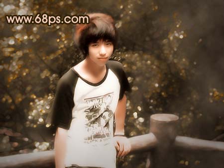 原图素材严重偏色及失真,处理起来比较麻烦。不过可以用滤镜效果把背景部分换成另外的形式,再整体调色及调光。