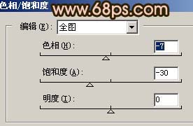 13、创建色相 > 饱和度调整图层,参数设置如图19,效果如图20。