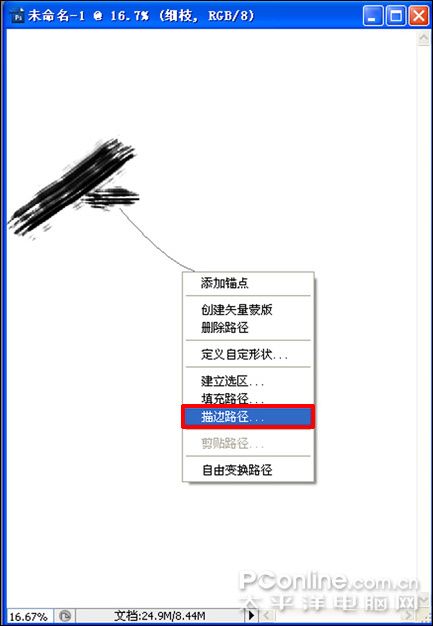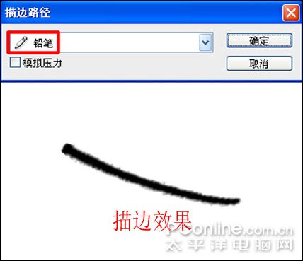 #p# 8、在弹出描边路径对话框的下拉列表中选择铅笔,点击确定或按Enter键,得到效果如图: