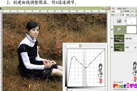 #p# 2、创建曲线调整图层,对a通道适当调整。