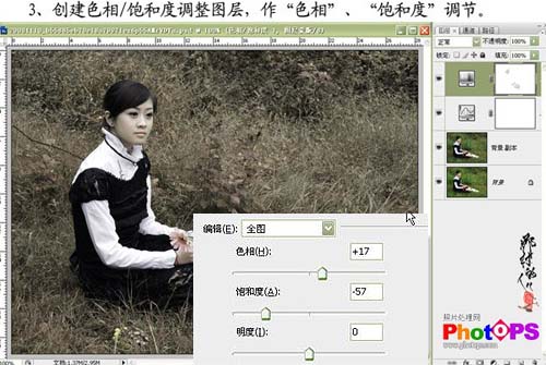 3、创建色相/饱和度调整图层,参数设置如下图。