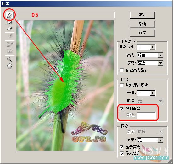 Photoshop抽出滤镜在复杂背景下抠毛毛虫教程