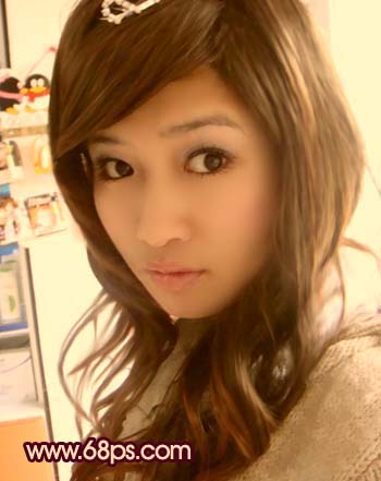 3、新建一个图层,盖印图层,选择涂抹工具把人物的头发涂顺畅,再用加深工具适当加深一点,效果如图5。