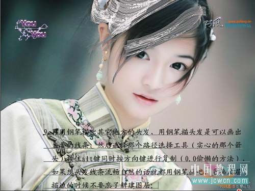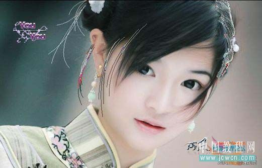 9、再用钢笔描出其它地方的头发,用钢笔描出路径,然后按住Ctrl + Alt复制,多画几层描边的时候不要忘记新建图层。