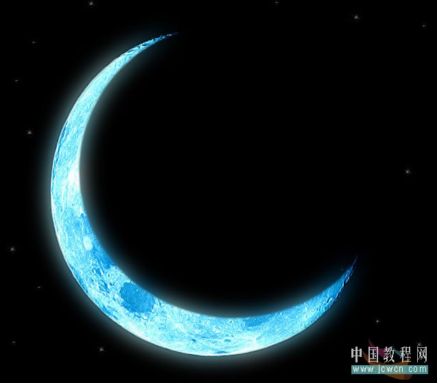 最终效果: 本文由 中国教程网 vind 原创,转载请保留此信息! 最终效果: 1.我们先找一张月亮的图 需要素材大图做练习的朋友可以到这里下载:http://bbs.jcwcn.com/viewthread.php?tid=219312 2.因为背景是比较纯的黑色,所以我们可以用"
