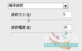 4."滤镜"-"扭曲"-"海洋波纹",波纹大小 5,波纹幅度 18
