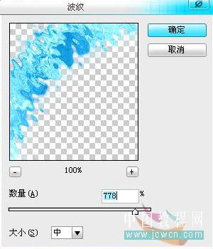 9.把月亮倒影的图层,用"滤镜"-"扭曲"-"波纹",数量:778% ,大小:中,