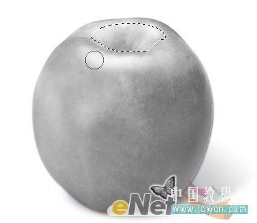 (9)使用“涂抹工具”或者“图章工具”,将苹果把的部分去掉,再将苹果上面的小颗粒部分去掉。