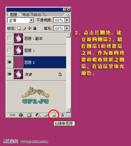 2、在背景图层上面新建一个图层,填充颜色:#A6306C。