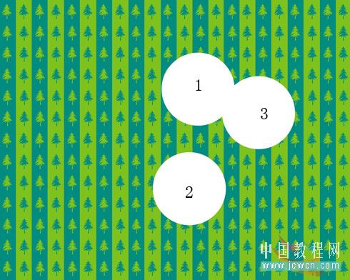 6、选择椭圆工具,前景色:白色,画三个园,注意3个园的大小基本一致。