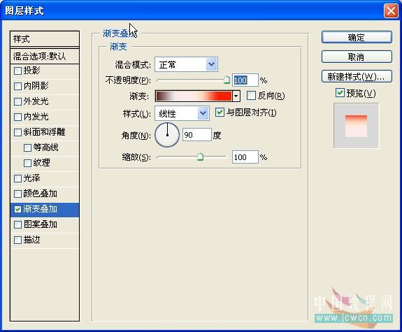 5.选择白色的路径,双击图层调出图层样式选项勾选渐变叠加,设置如下:
