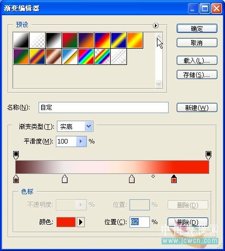 渐变的参数:(从左至右依次为 #602829 f0eaea f9a775 f32100)