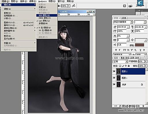 来源:PSFLY 作者:不详 本教程介绍摄影后期艺术处理。好的摄影作品再加上好的后期制作画面非同一般。作者的在整体配光及特效制作都非常有特色。细节个方面都处理得非常漂亮,值得学习。 原图 最终效果   1、先打开原图,把图像色彩模式改为Lab色彩模式。 2