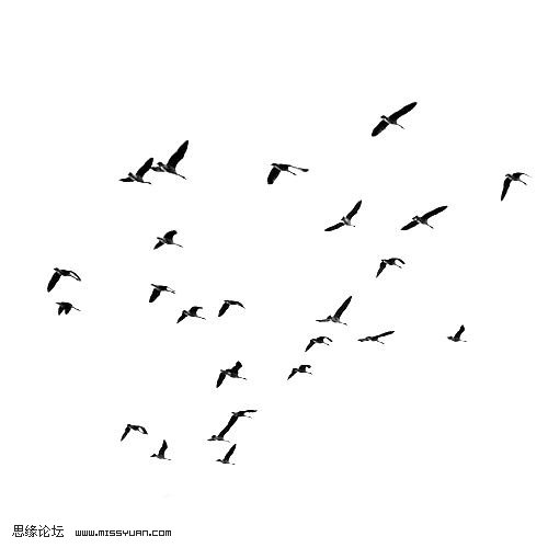6、拖入飞鸟素材,在通道面版里面把飞鸟抠出来,然后按Ctrl + I反相操作,再适当摆好位置。