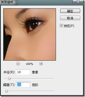 2、选定Blur图层,执行滤镜-模糊-表面模糊,为什么要用”表面模糊”呢?为什么呢?表面模糊比起高斯模糊可以保留更多边缘细节~!在这里模糊的程度以眼睛为准,确保你的图片眼睛是清晰的,数据可参照我滴。