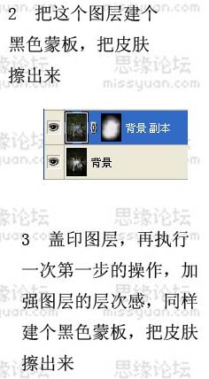 2、把副本图层加上图层蒙版,蒙版填充黑色,然后选择白色画笔工具把人物部分擦出来。